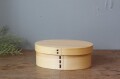 白木のヒノキで作られた小判型弁当箱。